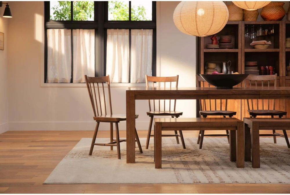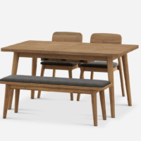 Extended Wooden Dining Table Set with 2 Fabric Chairs and Extended Bench – Brown, White | Seb by Castlery
