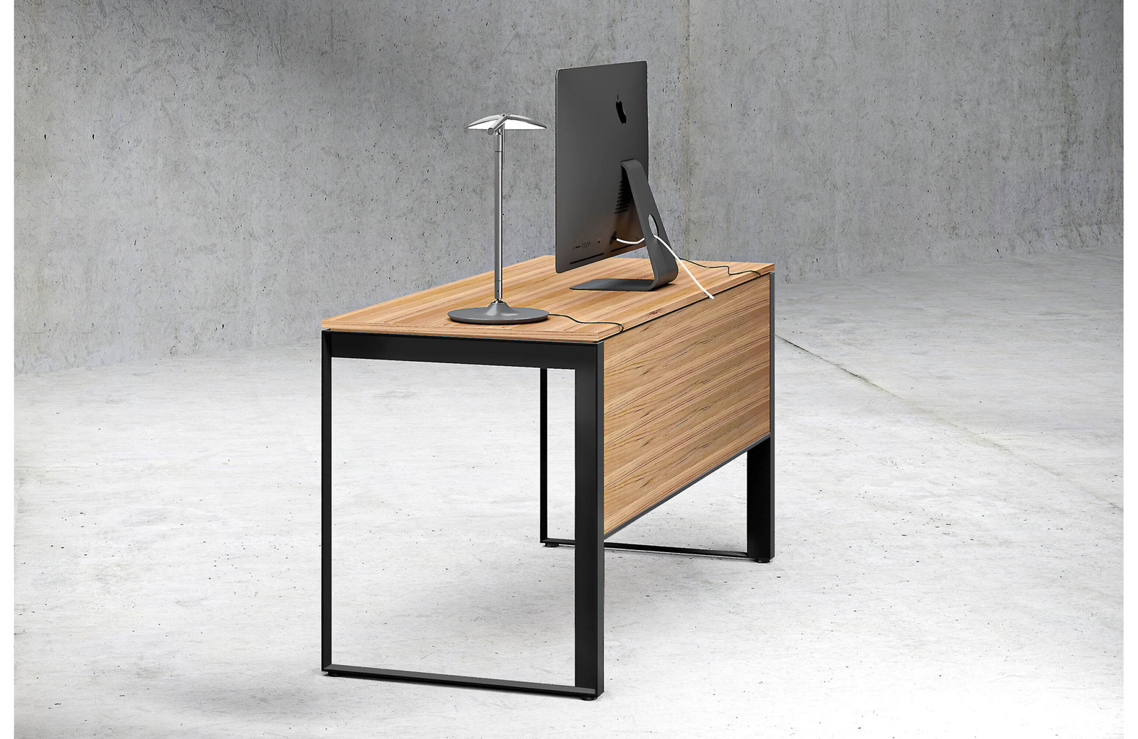 Solid Wood Writing Desk with Drawer and Cable Management | Scandinavian Mid Century Modern Large Desk | Walnut & Oak & Black | NOVA DESK