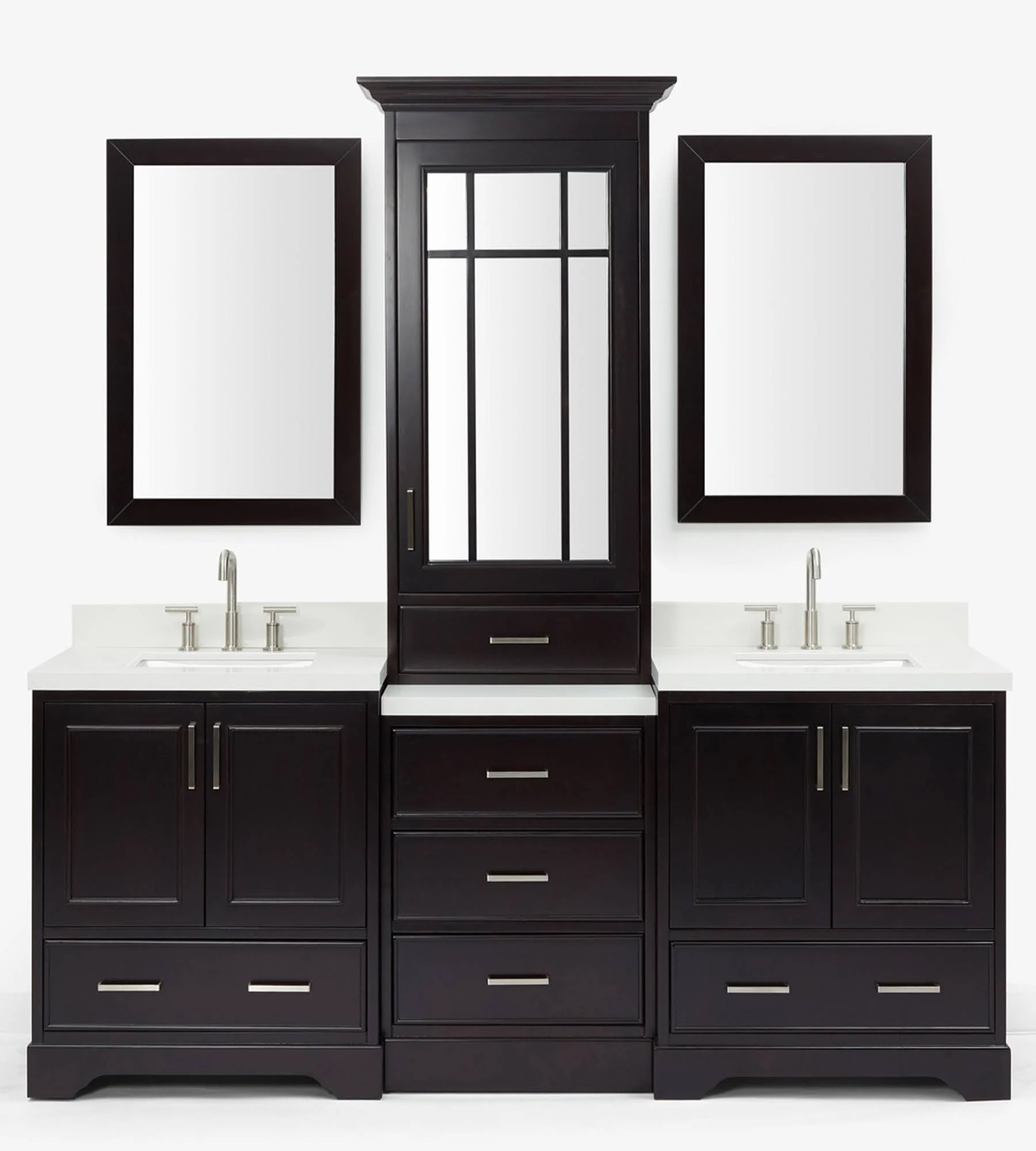 Ariel Stafford 85 In. Double Rectangle Sink Vanity Set White Quartz