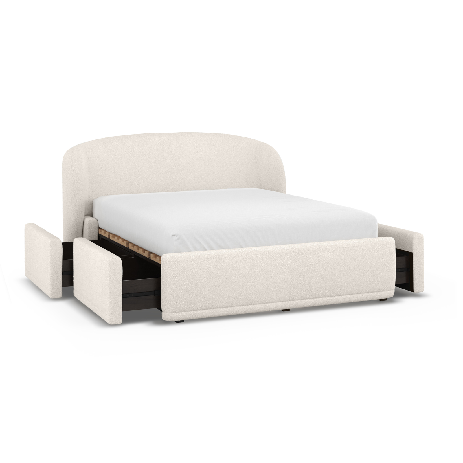 Upgrade your bedroom with the Spill-Resistant Storage Bed by Castlery, designed to combine smart functionality with modern style. Upholstered in