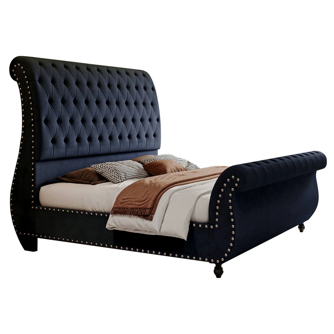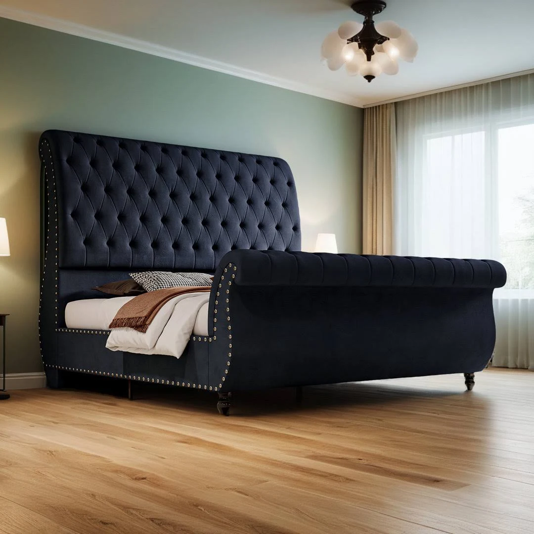 charlton home Fallan Velvet Sleigh Bed with Tall Tufted Headboard