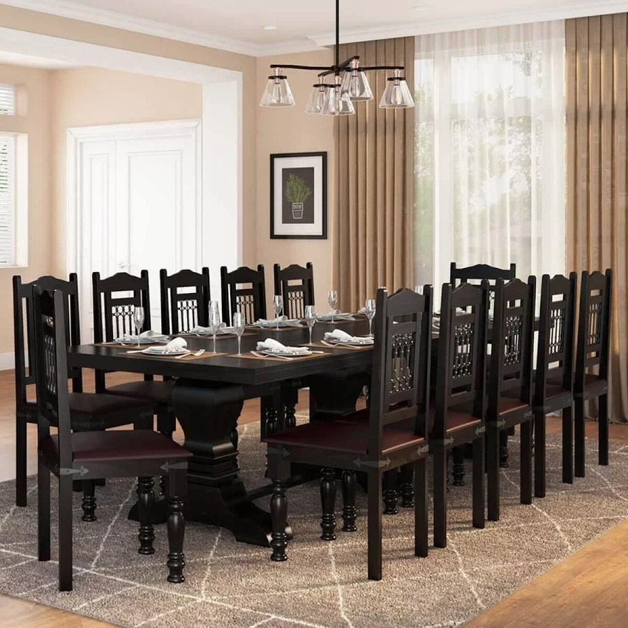 Make a grand statement in your dining space with this 122-inch Extra Large Triple Pedestal Dining Table, designed to comfortably