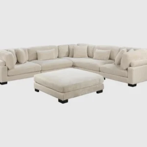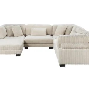Create a cozy and stylish living space with the Ellery Beige Corduroy 6-Piece Modular Sectional Sofa with Chair & Ottoman