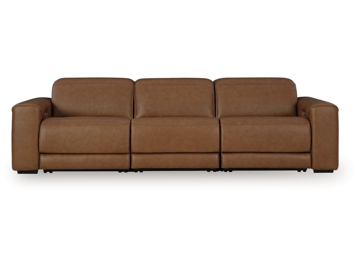 Elevate your living room with the Ashley Furniture Rally-Up Caramel 3-Piece Power Reclining Sectional Sofa, a perfect blend of contemporary style, everyday comfort, and modern convenience. Upholstered in rich caramel-tone leather, this sectional makes a bold yet warm design statement while delivering the ultimate relaxation experience.