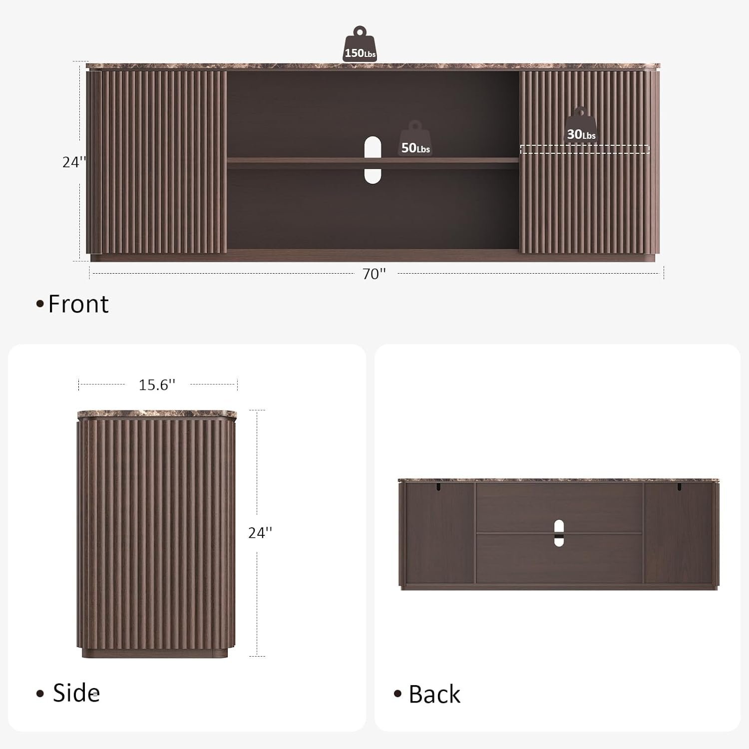 Featuring a spacious 70-inch tabletop, the stand can easily accommodate large televisions while providing room for decorative items, soundbars, and media accessories. The unit includes multiple drawers (3–6 storage drawers depending on configuration), offering convenient storage for remote controls, cables, gaming accessories, and other entertainment essentials.