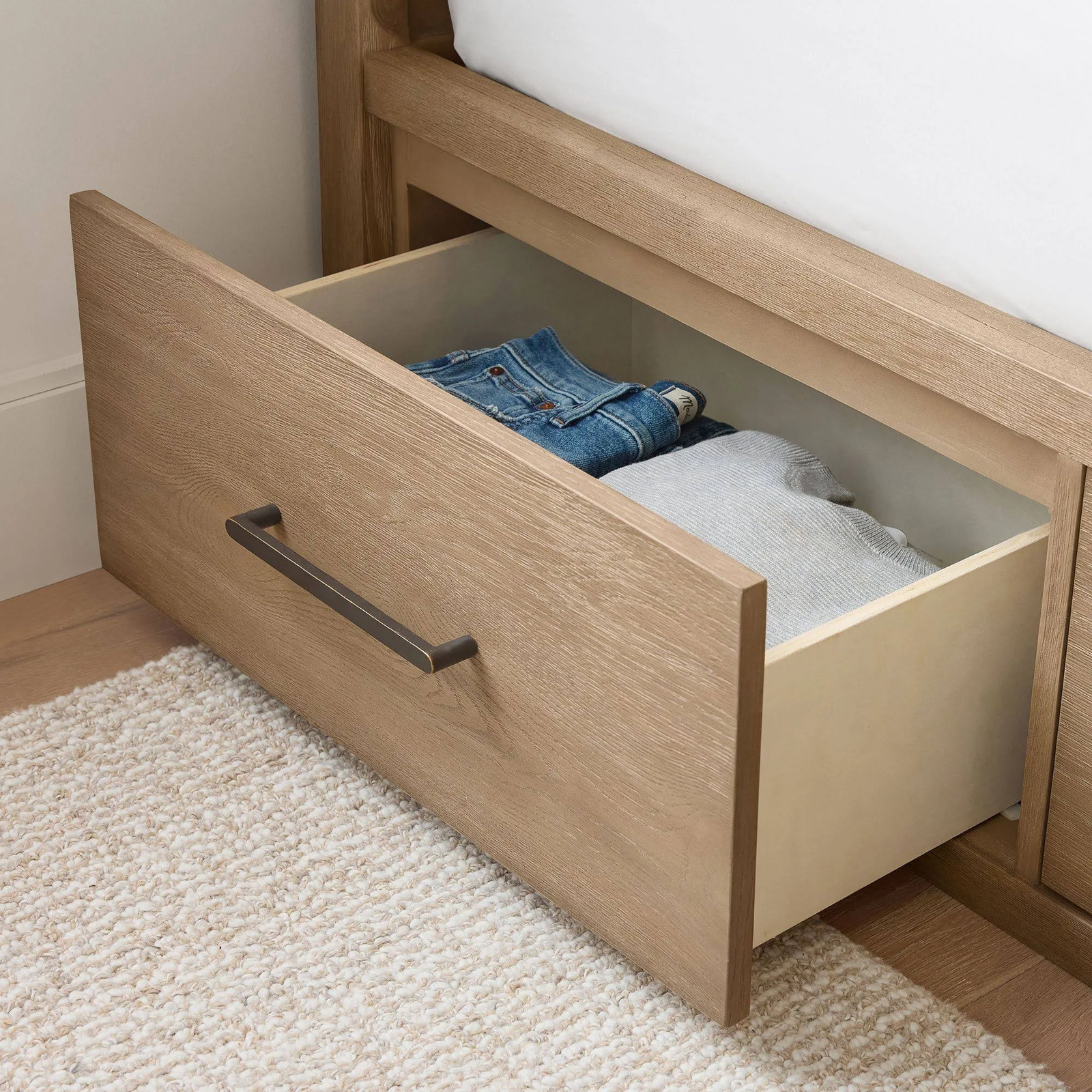 The Cleary Corner Storage Bed by Wayfair is a space-saving solution that combines functionality with contemporary style. Designed to fit neatly into a corner, this bed maximizes bedroom storage without sacrificing aesthetic appeal. Its sleek frame and modern silhouette complement a variety of décor styles, from minimalist to transitional interiors.