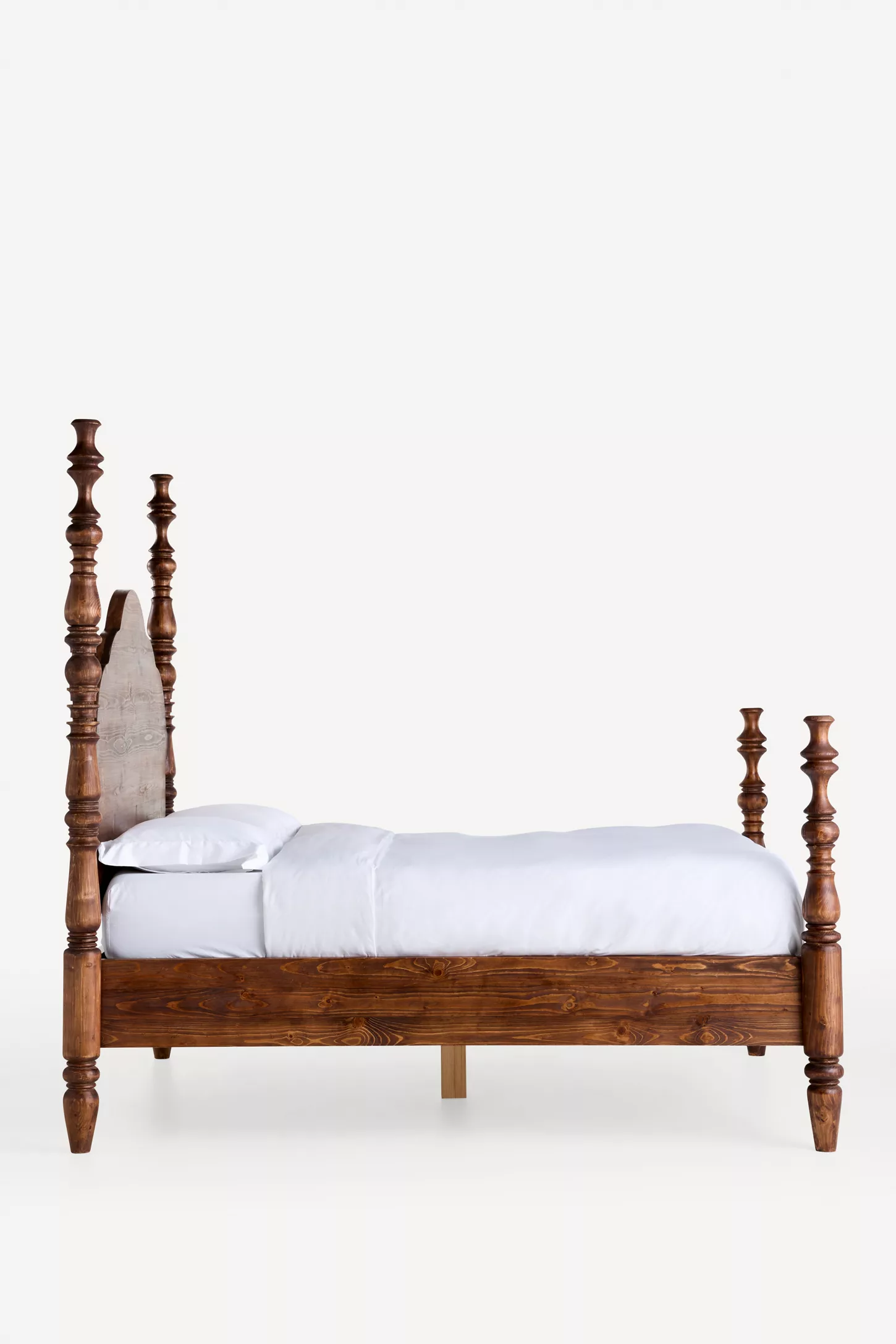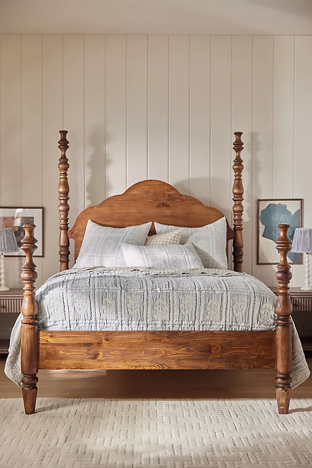 Crafted from solid wood for durability and strength, this bed frame offers reliable mattress support and long-lasting performance. The detailed spindle design adds texture and dimension, making it ideal for eclectic, traditional, or contemporary interiors. Whether styled with layered linens or kept minimal for a clean look, the Spindle Four-Poster Bed brings elevated design and comfort to your sleeping space.